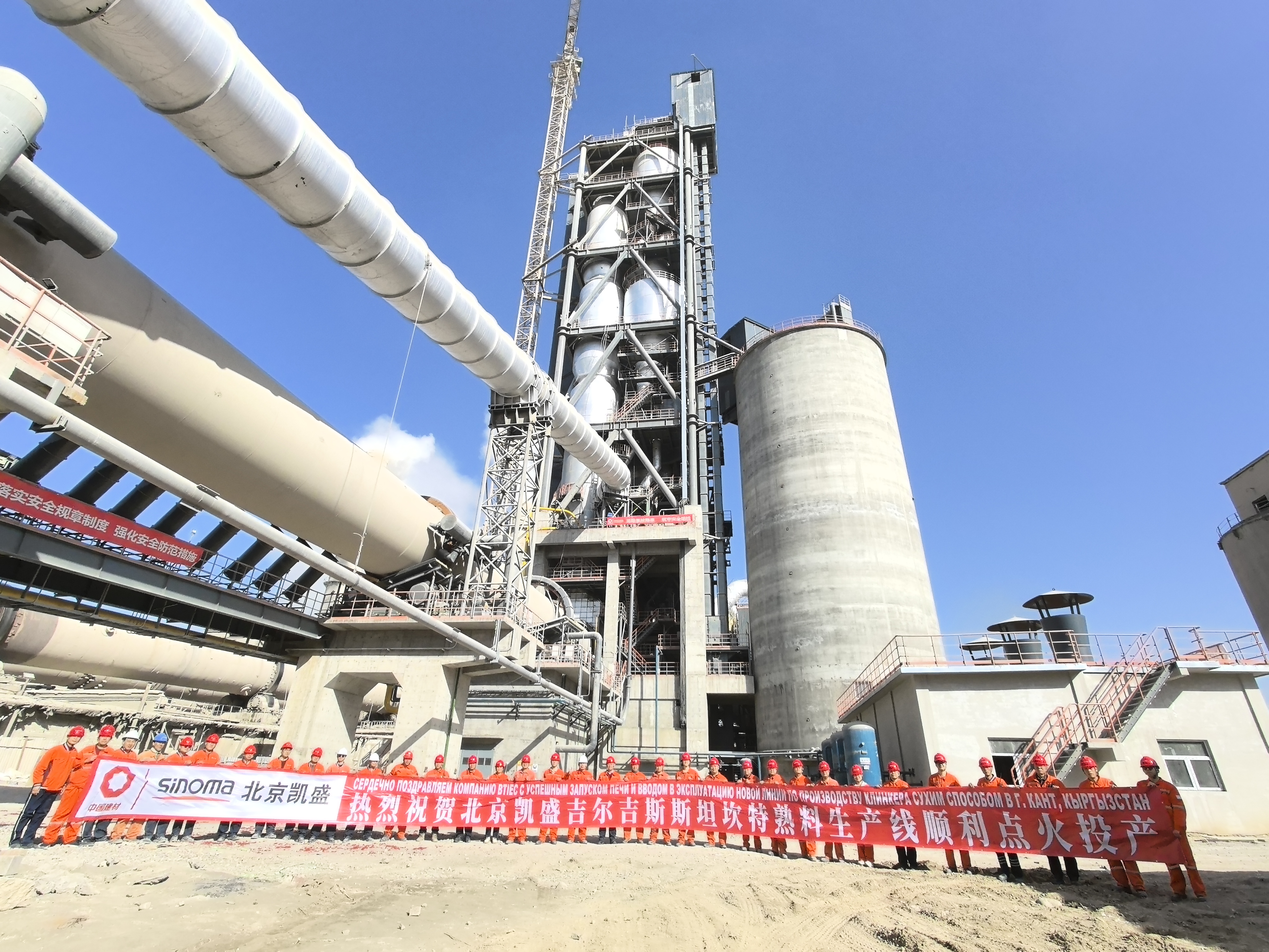 坎特項目是一條完整的新型干法熟料生產(chǎn)線,是北京凱盛深耕中亞市場的重要項目,也是吉爾吉斯斯坦近年來重點推進的工業(yè)現(xiàn)代化項目之一。項目建設(shè)期間,北京凱盛項目團隊克服了冬季施工、高粉塵狹窄空間作業(yè)、跨國供應(yīng)鏈協(xié)調(diào)等多重挑戰(zhàn),順利完成圖紙審核轉(zhuǎn)化、樁基施工等工作。該項目于2023年11月27日開工,2025年3月20日點火,在保證安全管理和質(zhì)量控制的前提下,用時16個月完成建設(shè)工作并實現(xiàn)點火投產(chǎn),比合同工期提前6個多月,全方位展示了北京凱盛杰出的管理能力、先進的技術(shù)能力和強大的履約能力,以及SINOMA品牌全鏈條的建設(shè)能力。